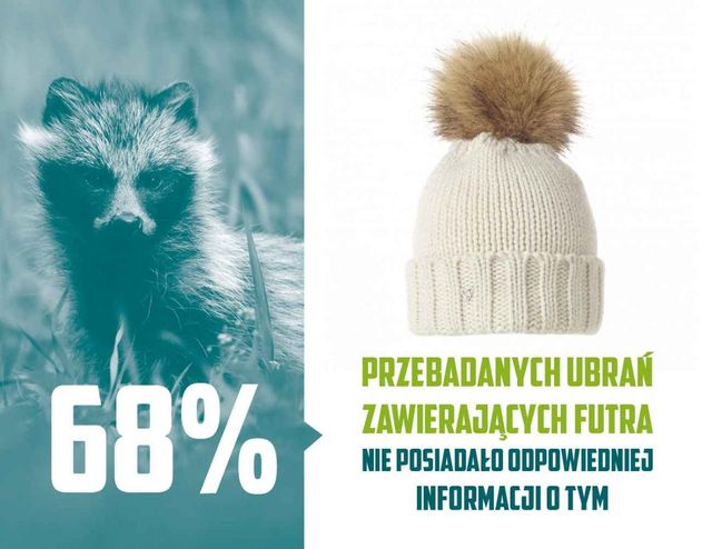 - Aż 68% z nich nie posiadało odpowiednich oznaczeń i opisów, wiele nie posiadało w ogóle informacji, że zawierają futro odzwierzęce.