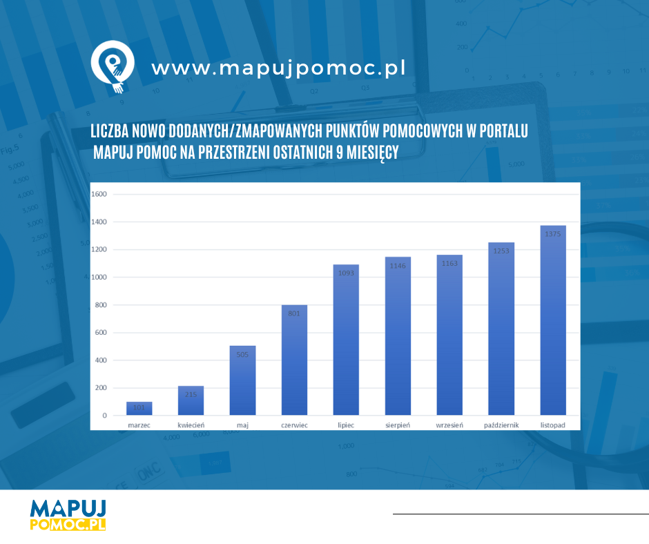 Z raportu wynika, iż sytuacja przedstawione na mapie pomocy jest zmienna i dynamiczna. Z łącznej liczby 1375 placówek (które uwzględniono w portalu) do końca listopada działalność utrzymało 1009 punktów. Co istotne, brak równej dystrybucji pomocy w Polsce widoczny jest niemal we wszystkich udostępnionych statystykach.
