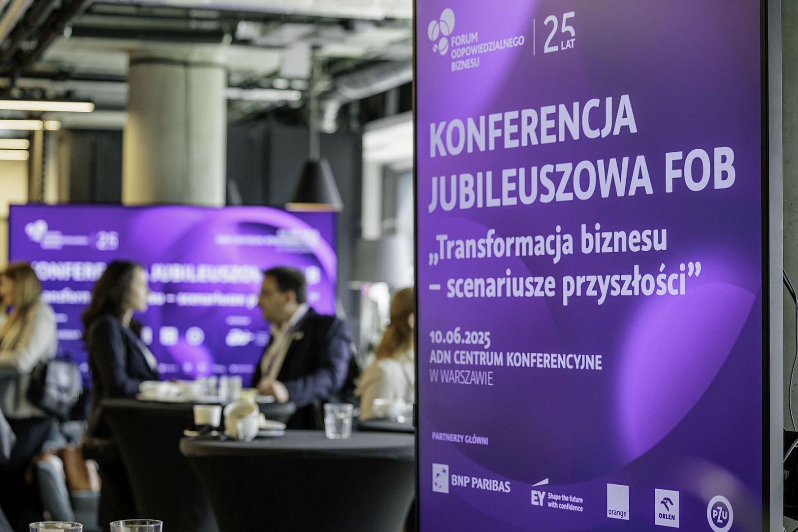 W tym roku Forum Odpowiedzialnego Biznesu obchodzi 25-lecie działalności – to ćwierć wieku budowania kultury odpowiedzialności w polskim biznesie. FOB od lat pełni bowiem rolę hubu wiedzy i wpływu na rzecz zrównoważonej transformacji biznesu w Polsce, łącząc ludzi, idee i dobre praktyki.