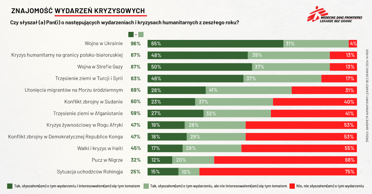 Badanie „Barometr Humanitarny 2024” Lekarzy bez Granic zrealizowane zostało przez Opinia24 na zlecenie Lekarzy bez Granic, metodą CAWI na reprezentatywnej grupie 1000 Polaków i Polek.