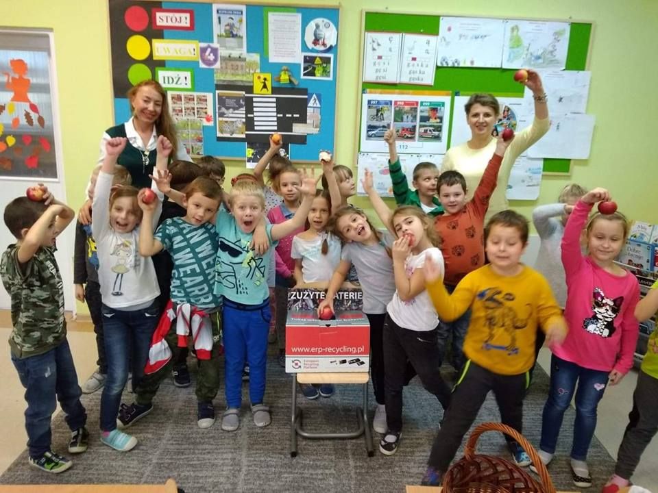 Recyklingowo owocowa akcja dotarła do szkoły podstawowej nr 4 w Lublińcu.Wychowawczyni klasy I b p.Marzena Kowalczyk Jasam wraz z dziećmi oddała baterie w zamian otrzymując od koordynatorki projektu Iwony Legenckiej słodkie jabłuszka :-). Dzieci chętnie wzięły udział w rozmowie o tym , jak chronić naszą Ziemię przed degradacją spowodowaną odpadami.