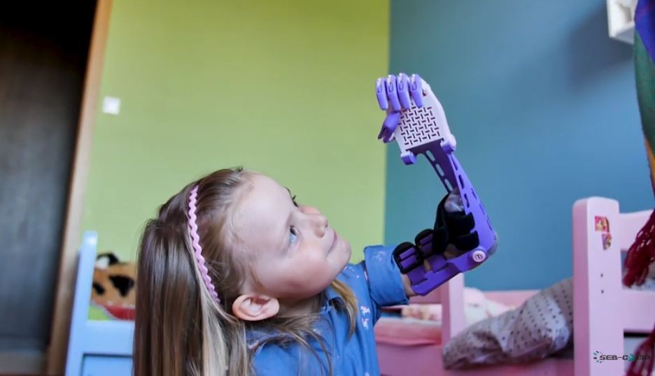 W wakacje 2019 roku dzięki współpracy trzech działalności – SEB-COMP (sprzedawca drukarek 3D), 3D with me (szkoła druku i grafiki 3D) oraz E-nable Polska (fundacja pomagająca osobom z niepełnosprawnościami rąk) – udało się stworzyć rękę 3D dla potrzebującej dziewczynki – Hani z Elbląga.