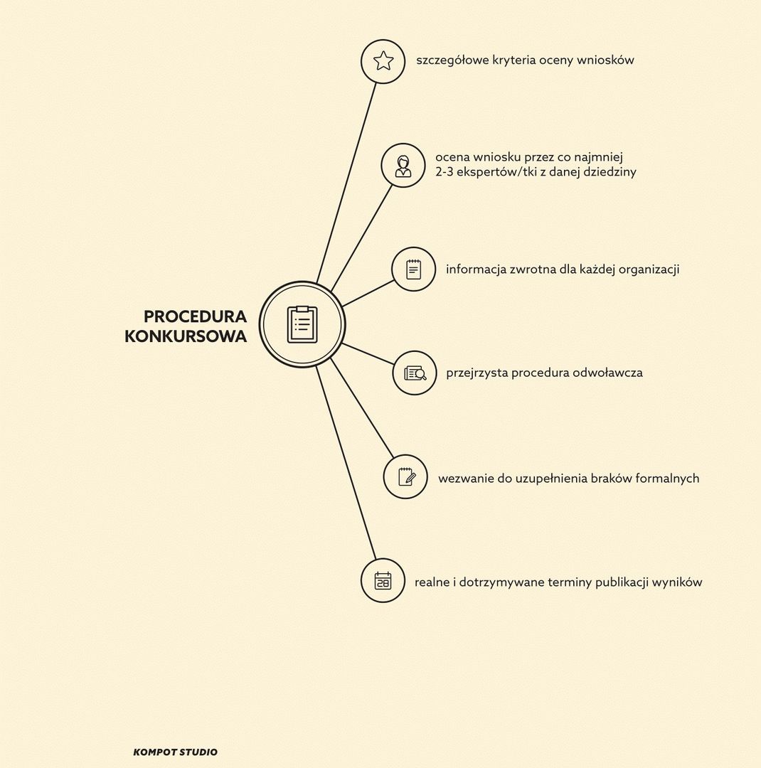Należy wprowadzić jasne, jawne i spójne reguły prowadzenia konkursów i programów dotacyjnych w ramach uproszczonych formalnie procedur aplikacyjnych.