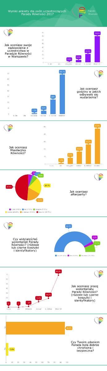 Jak wynika z przeprowadzonej przez Fundację Wolontariat Równości ankiety, udział w tegorocznej Paradzie przyniósł uczestnikom mnóstwo satysfakcji.