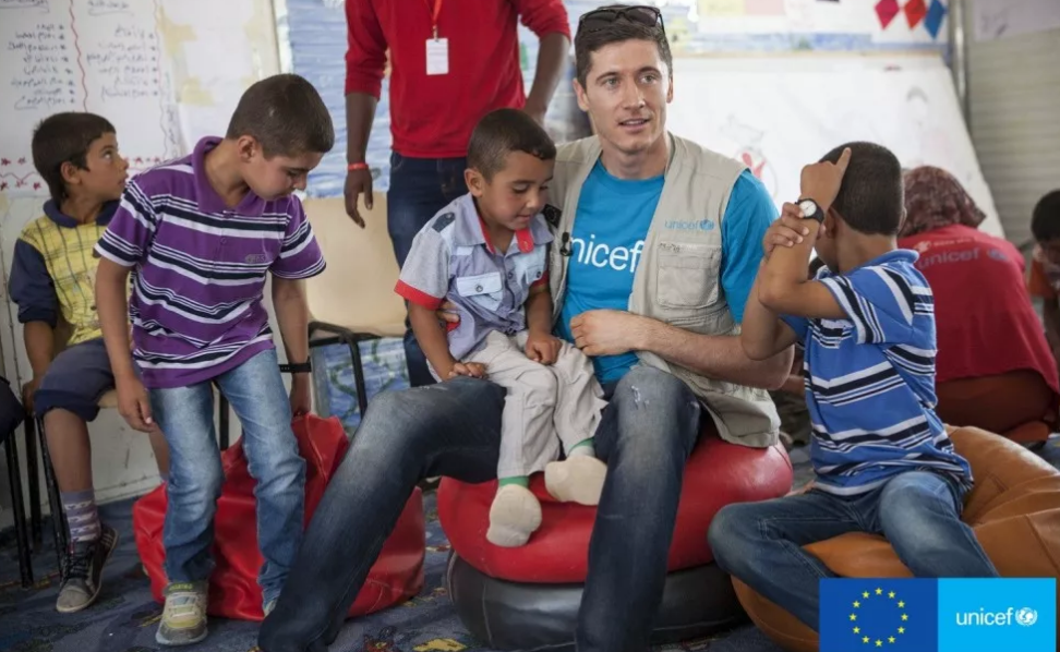 The best player in the history of Polish football and the captain of the Polish national team has been supporting for years people who had to leave their homes due to war and persecution. In May 2014, Robert Lewandowski, as the UNICEF Goodwill Ambassador, visited the Syrian refugee camp in Zaatari, Jordan. At that time, over 100,000 people were staying there, more than half of whom were children. The civil war in Syria has been going on since 2011. According to the United Nations, nearly 12,000 children were killed or injured during the war. Lewandowski, together with two boys, Hisham and Mohammad, visited the place where the children spend their free time, which helps them deal with the traumatic experiences. The footballer appealed: ‘We must be open to the children’s voice. Give them your voice, tell your relatives and friends that there are children all over the world who are waiting for our help and interest. Help us tell their story. Your voice is priceless for these children.’