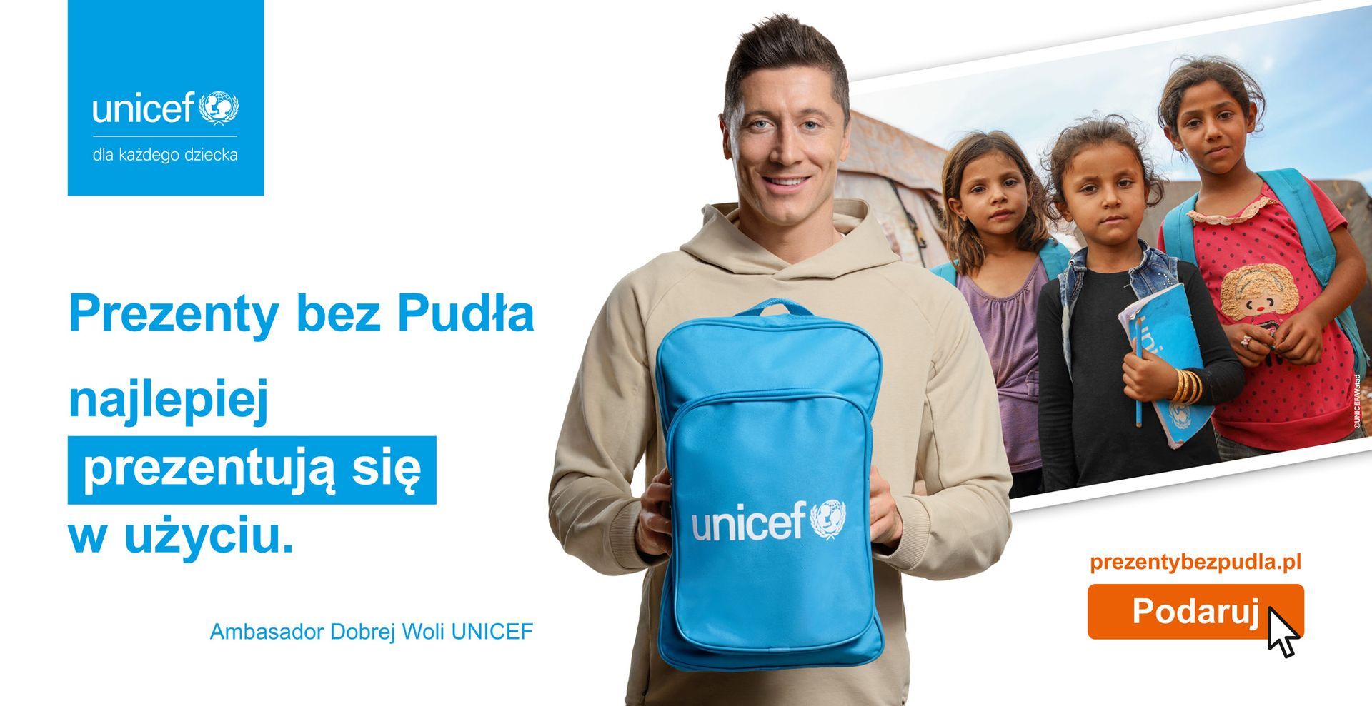 Wielu najmłodszych na świecie potrzebuje naszej pomocy. Takim dzieciom pomoc niesie UNICEF. Zdecydowałem się wesprzeć program UNICEF Polska „Prezenty bez Pudła”, bo wierzę, że razem możemy poruszyć serca Polaków oraz nieść pomoc najbardziej potrzebującym dzieciom na świecie, mówi Robert Lewandowski, Ambasador Dobrej Woli UNICEF.