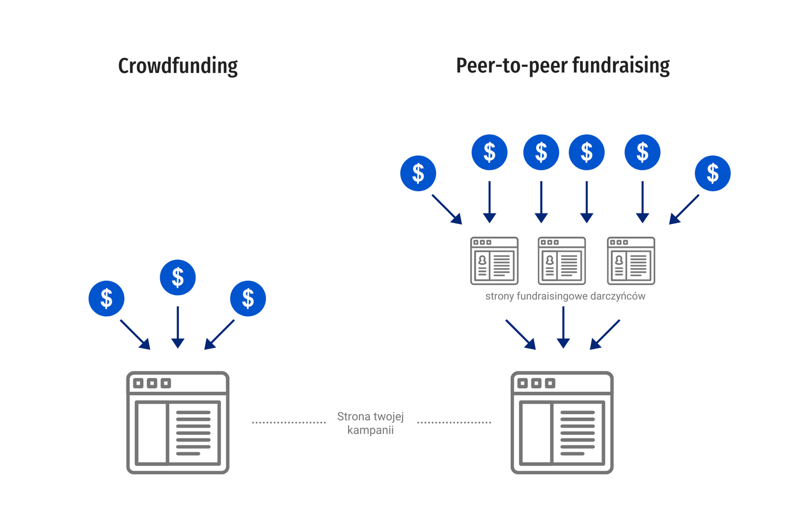 Kolejnym, wyraźnie zauważalnym trendem jest fundraising „rówieśniczy”, „równoległy”, bo nie ma chyba dobrej polskiej nazwy na peer-to-peer. Idea tego sposobu pozyskiwania funduszy polega na inspirowaniu fanów i fanek organizacji do samodzielnego organizowania zbiórek pieniędzy, najczęściej wśród członków rodziny i przyjaciół. Dzieje się to przy okazji wydarzeń osobistych, np. urodzin – urodzinowe zbiórki na Facebooku organizowane przez sympatyków i sympatyczki dla wielu organizacji stają się w ostatnim czasie zauważalnym źródłem przychodu. Dobrą okazją do zbiórek staje się udział w maratonach, biegach charytatywnych, a nawet organizacja własnego wesela. Taka forma fundraisingu bazuje na zaufaniu wśród najbliższych, co zwiększa skuteczność próśb o wsparcie.
