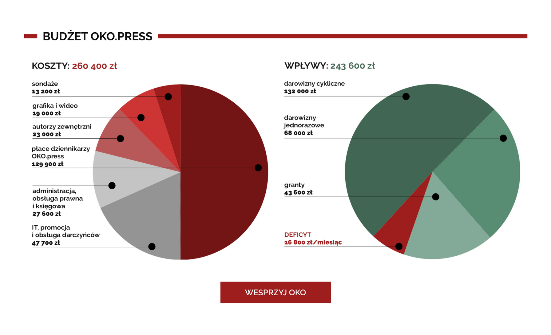 Z kolei OKO.press podaje, że z darowizn cyklicznych pozyskuje 132 000 PLN.