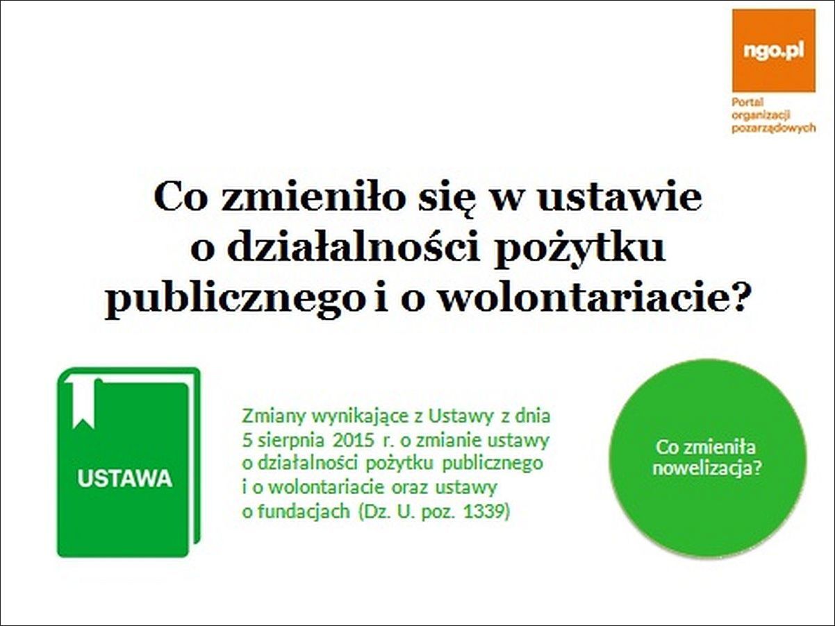 Nowelizacja ustawy o pożytku uchwalona 5 sierpnia 2015 r. była szeroko opisywana w portalu ngo.pl. Poniżej zamieszczamy linki do tekstów, pozwalających zapoznać się ze zmianami wprowadzonymi na jesieni 2015 r.