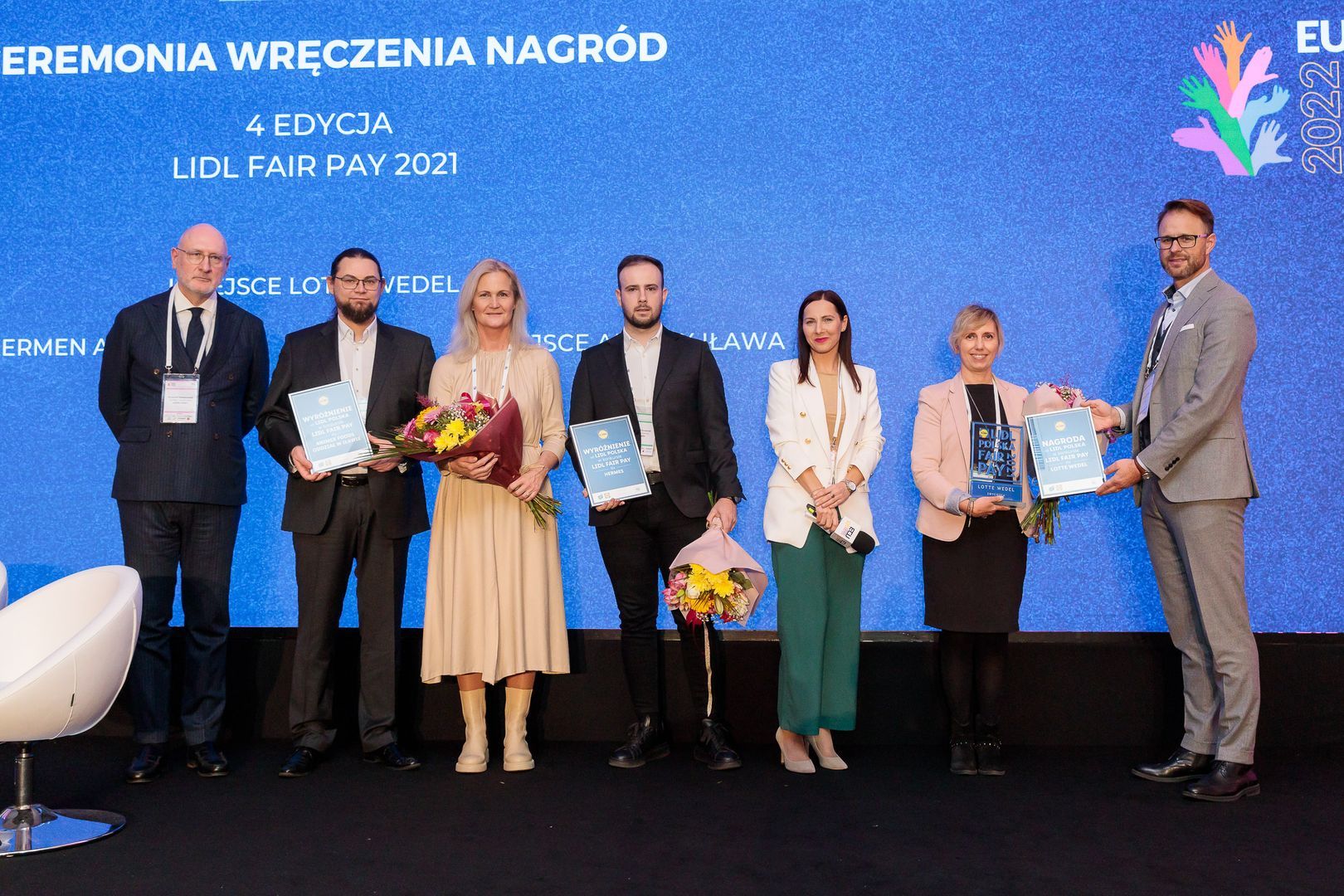 Czwarta edycja konkursu „Lidl Fair Pay” rozstrzygnięta! 24 listopada, podczas uroczystej gali European Circular Retail Congress 2022, Lidl Polska wraz z nowym partnerem strategicznym – United Nations Global Compact Network Poland (UN GCNP) – oraz partnerem merytorycznym, międzynarodową firmą doradczą Korn Ferry, wręczył nagrody trójce finalistów: polskim firmom zatrudniającym do 1500 pracowników, które w swojej codziennej praktyce promują równość wynagrodzeń kobiet i mężczyzn, oraz tworzą miejsce pracy sprzyjające równości płci. Laureatami czwartej edycji konkursu zostały: Lotte Wedel (I miejsce), Hermes Sp. z o.o. (II miejsce), Animex Foods Sp. z o.o. Oddział w Iławie (III miejsce).