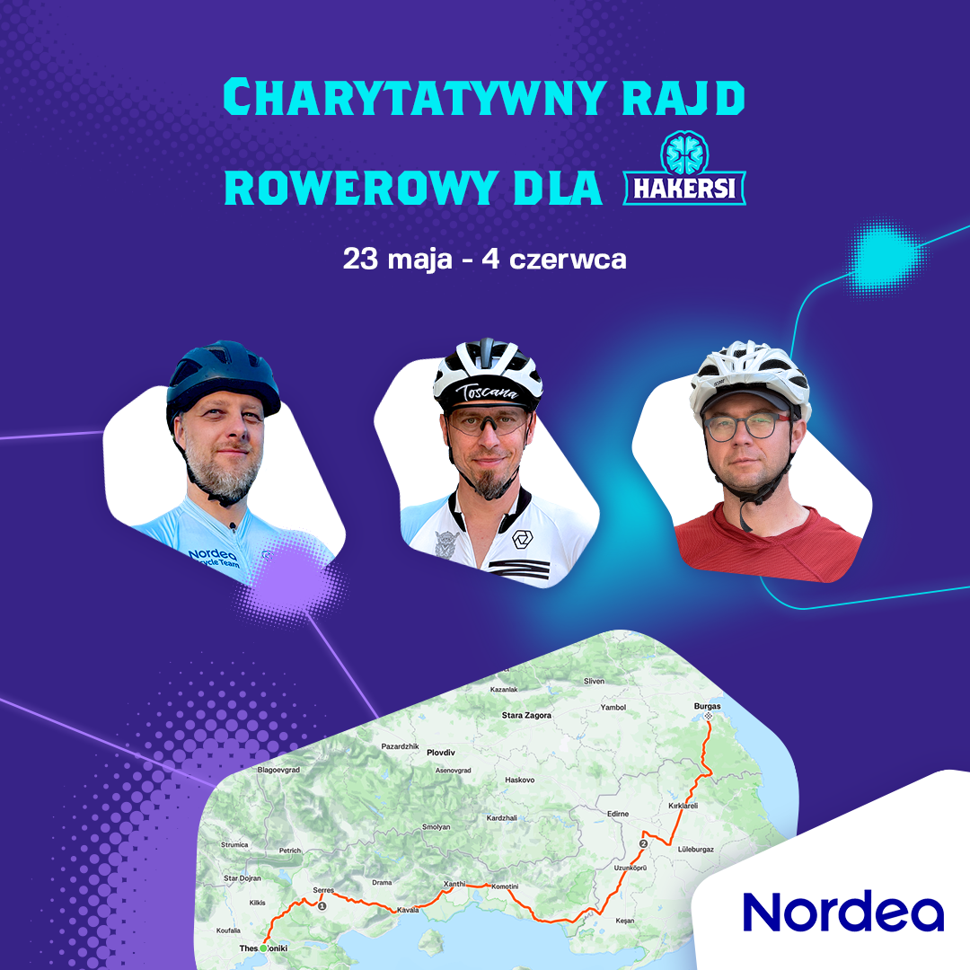 Ruszył wyjątkowy rajd charytatywny. 800 kilometrów w 10 dni na górzystej, wymagającej trasie, która zacznie się w Salonikach (Grecja), a zakończy się w Burgas (Bułgaria). To wyzwanie rowerowe, którego podejmą się Piotr Wojtera, Piotr Ciskowski i Paweł Wyszomirski, w ramach projektu „Nordea dla Hakersi”. Celem rajdu jest wsparcie dzieci wykluczonych cyfrowo i zapewnienie im dostępu do nauki.