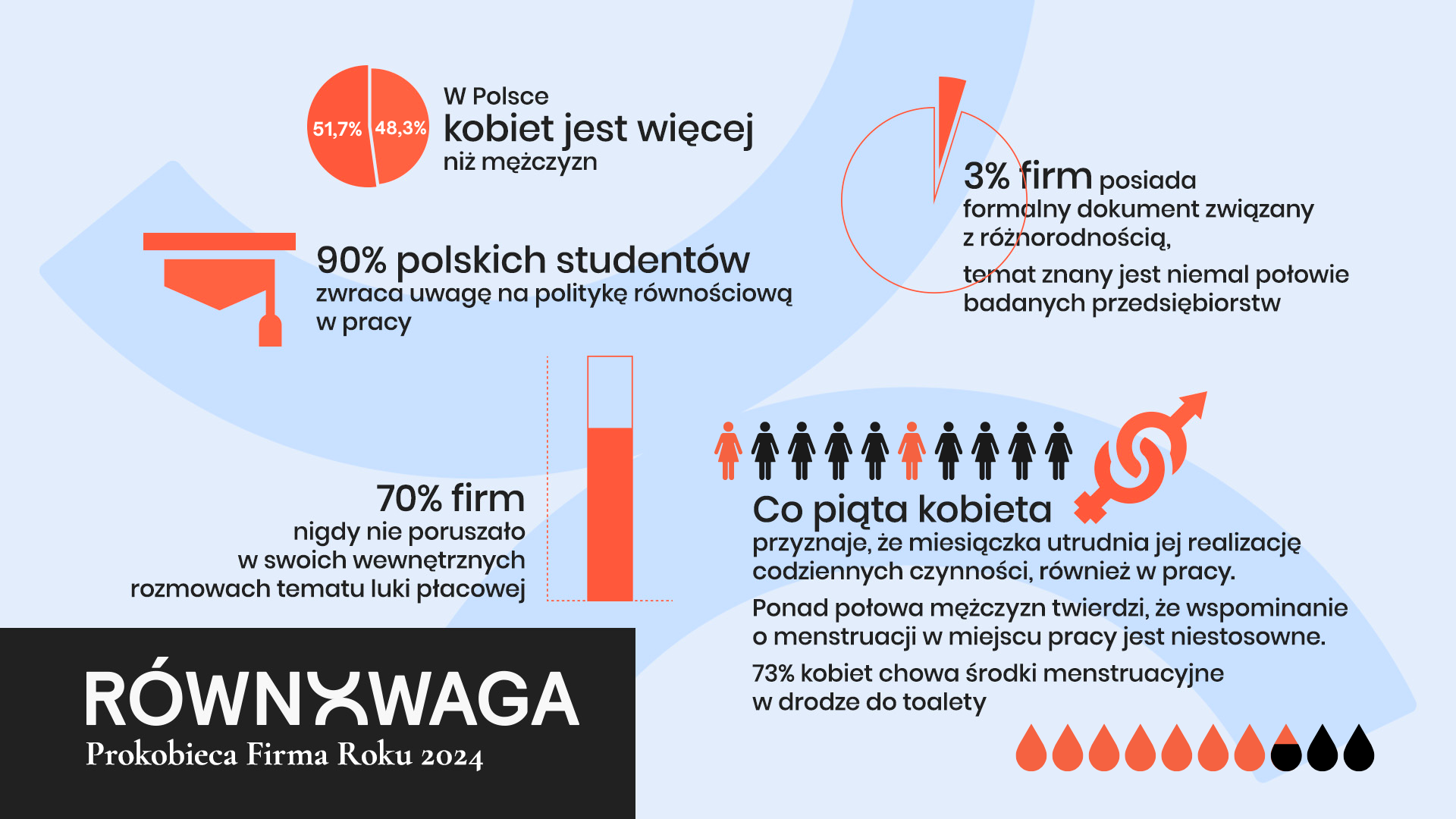 W tym duchu startuje 2. edycja konkursu na prokobiecą firmę roku RównoWaga. To inicjatywa Dominiki Kulczyk, którą jej fundacja prowadzi wspólnie z Konfederacją Lewiatan i Stowarzyszeniem Kongresem Kobiet, w partnerstwie Instytutu Badań Strukturalnych i Fundacji Share the Care. Konkurs skierowany jest do pracodawczyń i pracodawców, którzy angażują się w działania na rzecz równości kobiet w miejscu pracy oraz w kompleksowy sposób przeciwdziałają dyskryminacji.