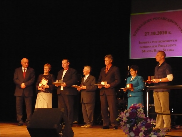 W wypełnionej po brzegi, pięknie udekorowanej sali Miejskiego Centrum Kultury im. H. Bisty zasiedli przedstawiciele Samorządu oraz główni adresaci uroczystości – rudzcy społecznicy. Wszyscy zostali pięknie przywitani przez Pełnomocnika Prezydenta Miasta ds. organizacji pozarządowych Mirosławę Szołkiewicz. Następnie głos zabrał Prezydent Miasta Andrzej Stania – organ nadzorujący rudzkie organizacje trzeciego sektora i Gospodarz gali. Prezydent podkreślił, iż uroczystość stanowi formę podsumowania pracy i podziękowania wszystkim zaangażowanym w działania sektora pozarządowego na rzecz społeczności lokalnej. Następnie wręczył wyróżnienia 37 najaktywniejszym organizacjom: stowarzyszeniom, fundacjom i podmiotom kościelnym. W tym roku, w związku z małym jubileuszem, kandydatów do wyróżnień nie wskazywali przedstawiciele organizacji, lecz Prezydent Miasta w porozumieniu z naczelnikami wydziałów merytorycznych Urzędu Miasta i kierownikami miejskich jednostek organizacyjnych współpracujących z trzecim sektorem. Wyróżnienia odebrali m.in.: