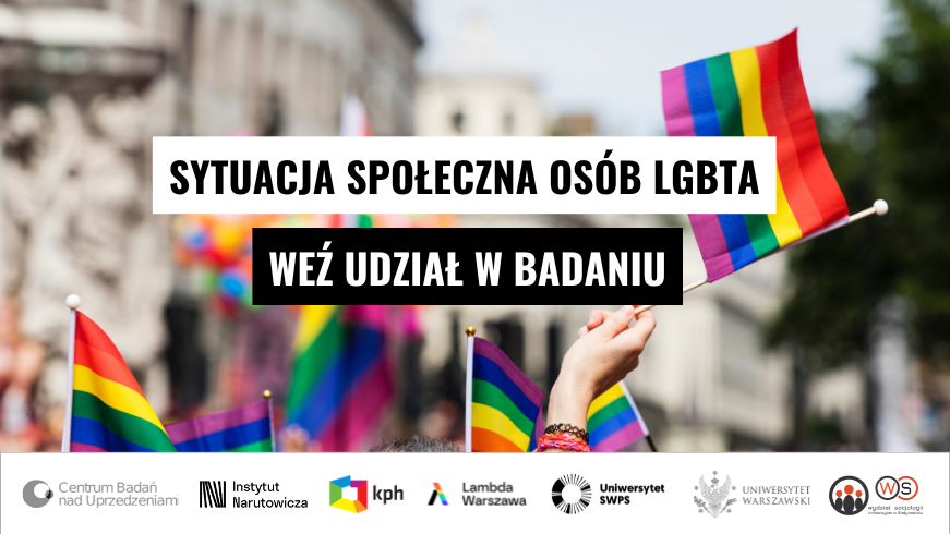 Kampania Przeciw Homofobii, Lambda Warszawa, Centrum Badań nad Uprzedzeniami Uniwersytetu Warszawskiego, Instytut Myśli Politycznej im. Gabriela Narutowicza, Uniwersytet SWPS, Wydział Socjologii Uniwersytetu w Białymstoku rozpoczynają kolejną edycję badania „Sytuacja społeczna osób LGBTA w Polsce” i zapraszają osoby LGBTA mieszkające w Polsce od co najmniej 2 lat, które ukończyły 13 lat, do wypełnienia anonimowej ankiety.