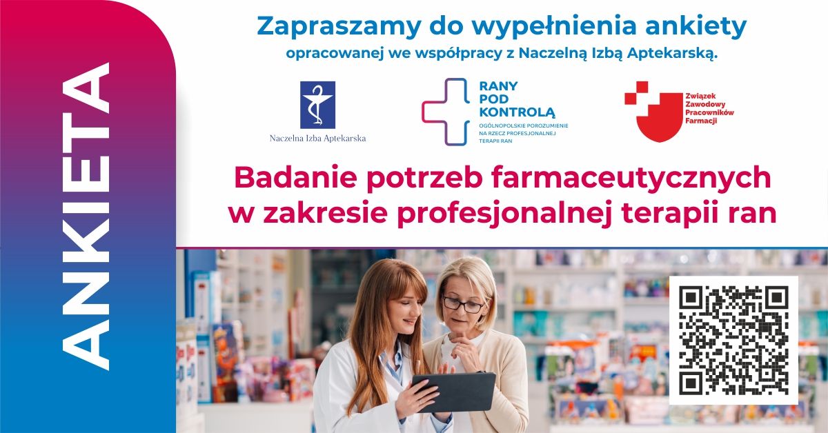 Ankieta, dostępna pod linkiem https://www.interankiety.pl/a/badaniepotrzebfarmaceutow, obejmuje pytania dotyczące codziennych doświadczeń związanych z kontaktem z pacjentem z raną czy owrzodzeniem, poziomu wiedzy, praktyki doradczej, zakresu dostępnych produktów, a także wskazania obszarów, które wymagają dodatkowego szkolenia lub wsparcia.