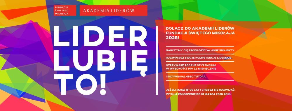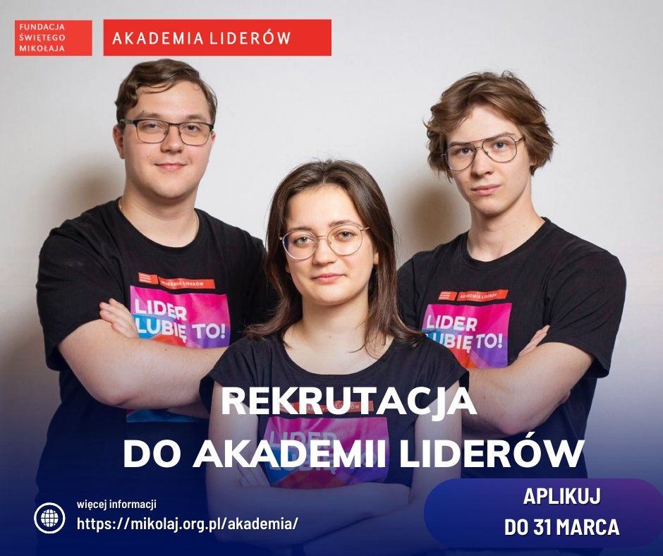 Fundacja Świętego Mikołaja poszukuje młodych, zaangażowanych społecznie osób, które wezmą udział w Akademii Liderów w 2025 roku. Akademia to bezpłatny program rozwojowy dla młodzieży. Fundacja prowadzi Akademię już po raz 10! Rekrutacja w tym roku trwa do 31 marca na stronie Fundacji – www.mikolaj.org.pl. Akademia Liderów zapewnia uczestnikom nie tylko rozwój umiejętności przywódczych, ale także przestrzeń do budowania relacji i współpracy.