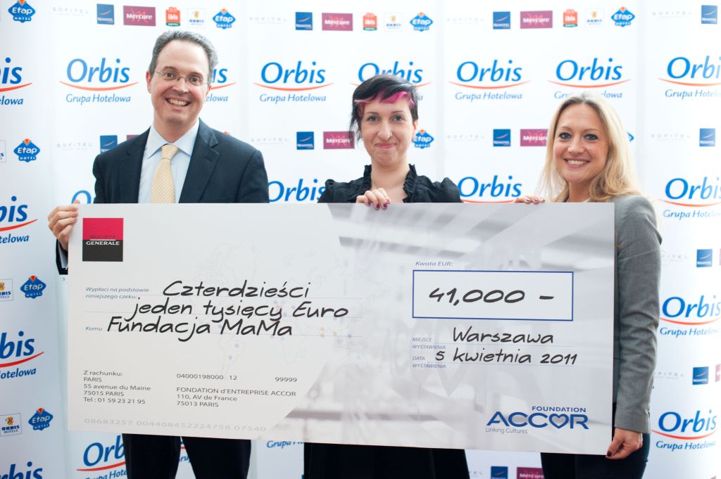 Dzięki zaangażowaniu pracowników Orbis S.A., Fundacja Accor przekazała 41 000 euro Fundacji MaMa na projekt „Spółdzielnia MaM”, pomagając 15-stu młodym, samotnym i bezrobotnym matkom w powrocie do życia społecznego i zawodowego