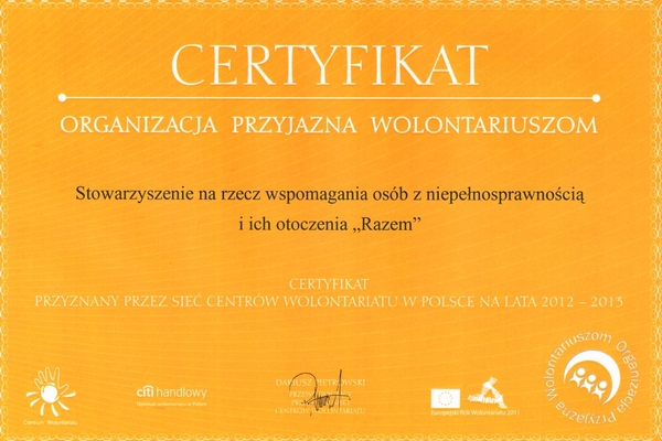 Stowarzyszenie „Razem” z Rybnika zostało uhonorowane tytułem „Organizacja Przyjazna Wolontariuszom”. Certyfikat ten przyznano 70 organizacjom wzorowo współpracujących z wolontariuszami, w tym dwóm stowarzyszeniom z Rybnika.