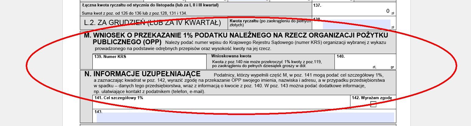 Przekazania takiego dokonuje się w formularzu PIT-28 (część M i N, pozycje 139–142) wedle podobnych zasad, jakie obowiązują podatników rozliczających się z podatku dochodowego od osób fizycznych. Podatnik wskazuje więc numer KRS wybranej organizacji i wylicza kwotę. Może też wskazać cel szczegółowy czy wyrazić zgodę na przekazanie OPP swoich danych.
