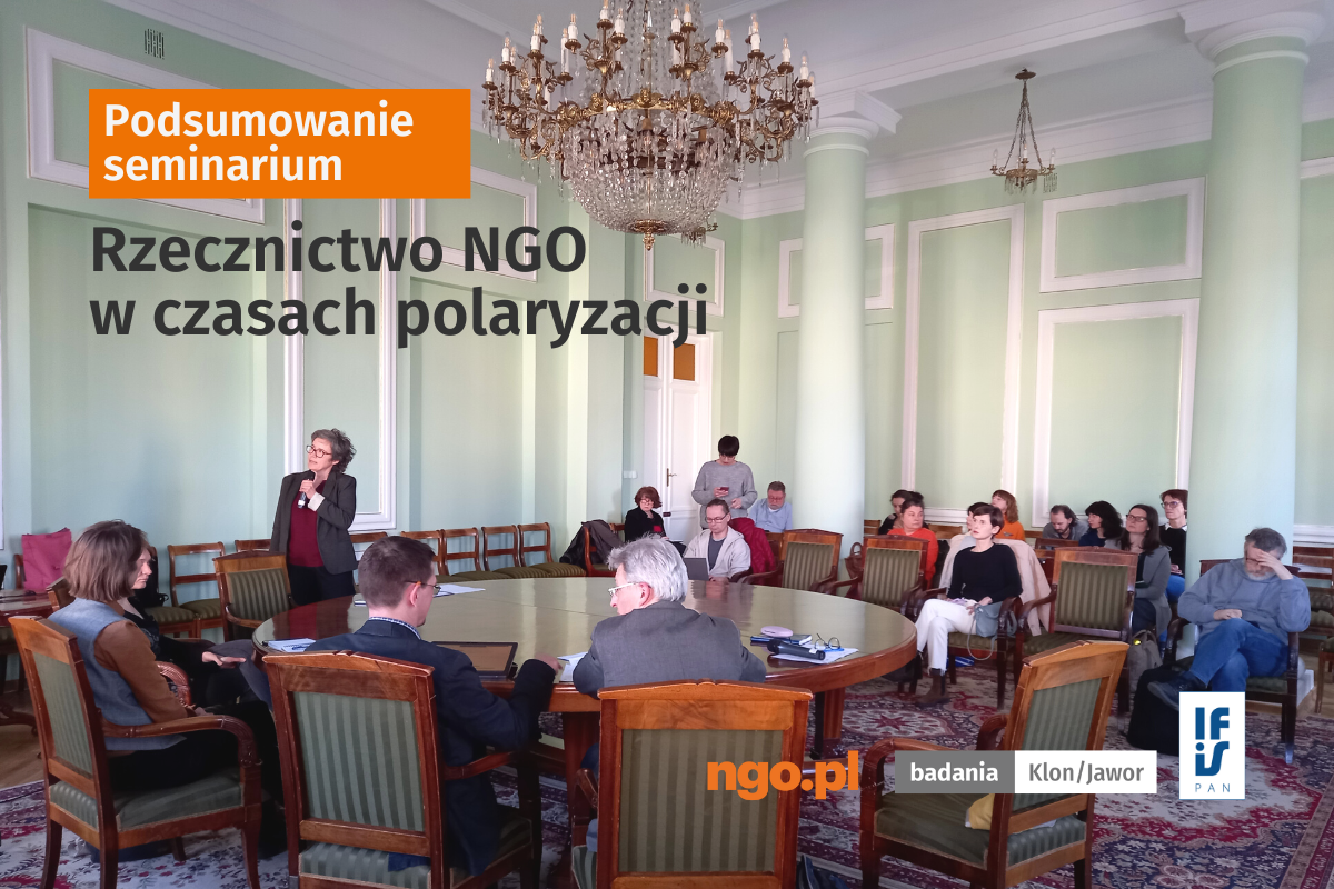 Seminarium „Rzecznictwo organizacji pozarządowych w czasach polaryzacji: dyskusja wokół wyników badań” to spotkanie, które odbyło się 29 marca 2023 roku w Pałacu Staszica w Warszawie. Zorganizowały je zespół Badań Klon/Jawor oraz Instytut Filozofii i Socjologii PAN. Punktem wyjścia do spotkania był raport „Efekt mrożący. O kondycji rzecznictwa organizacji pozarządowych”, który powstał przy współpracy środowiska pozarządowego i naukowego, tj. badaczek Stowarzyszenia Klon/Jawor oraz prof. IFIS PAN Galii Chimiak.