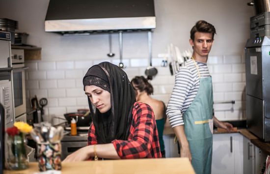 To w tej restauracji, zatrudniającej migrantów i uchodźców, serwującej dania z regionów ogarniętych konfliktami, Hamza znalazł pierwszą pracę. I ludzi, którzy – podobnie jak on – musieli budować swój świat niemal od zera.