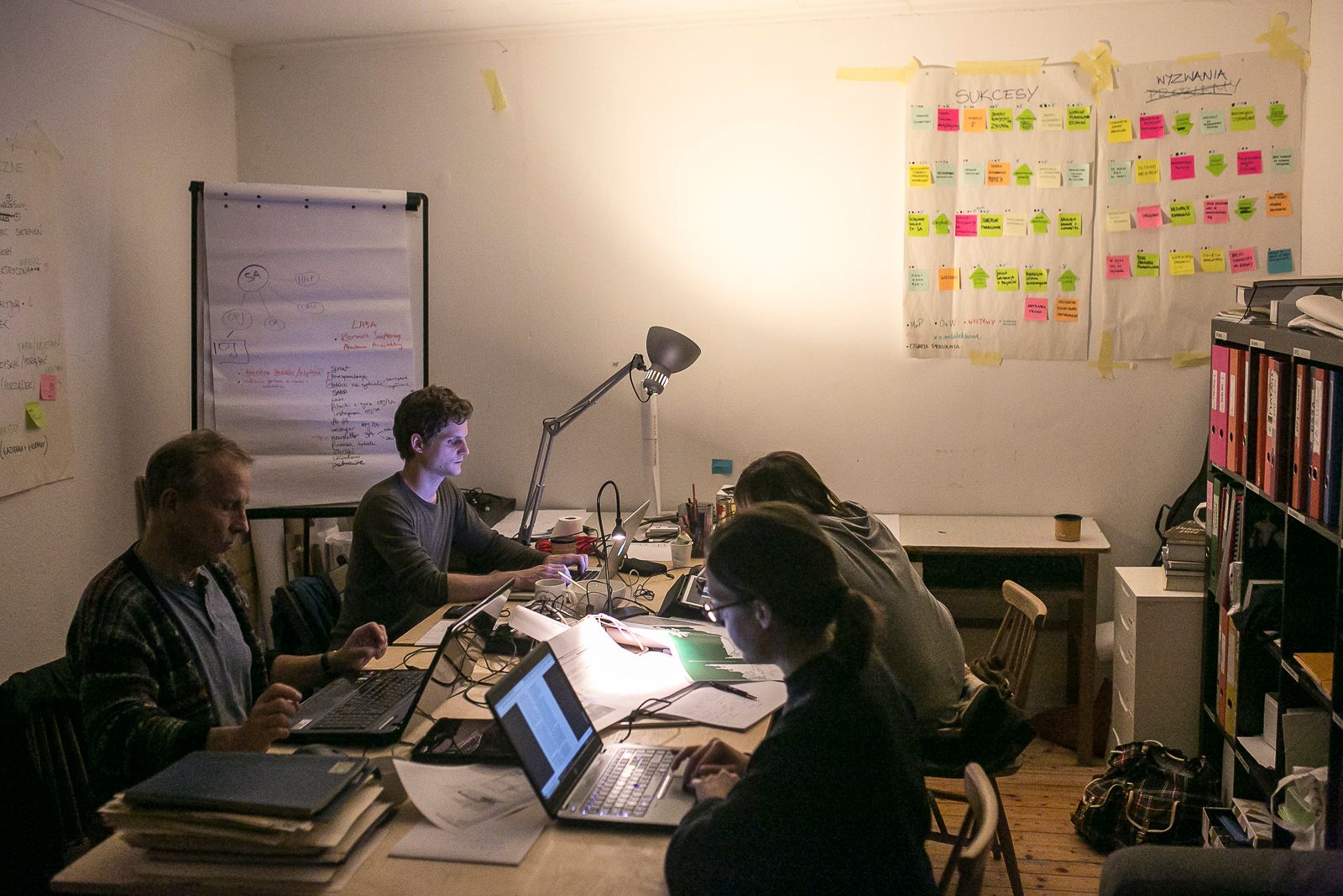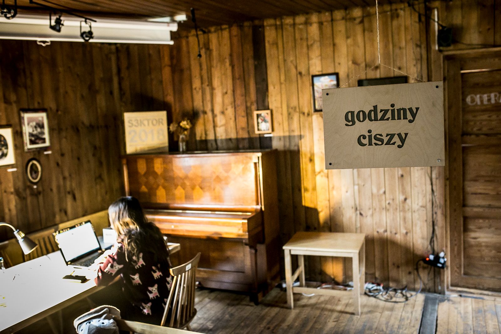 Powoli schodzą się ludzie, ale do czternastej na pewno będzie można spokojnie popracować, bo trwają godziny ciszy. – To daje pewność, że nikt w tym czasie nie zaplanuje remontu stołu ani zebrania na trzydzieści osób – mówi Nikodem Słomczyński, jeden z opiekunów Pracowni. Później możemy się już spodziewać takich właśnie działań.