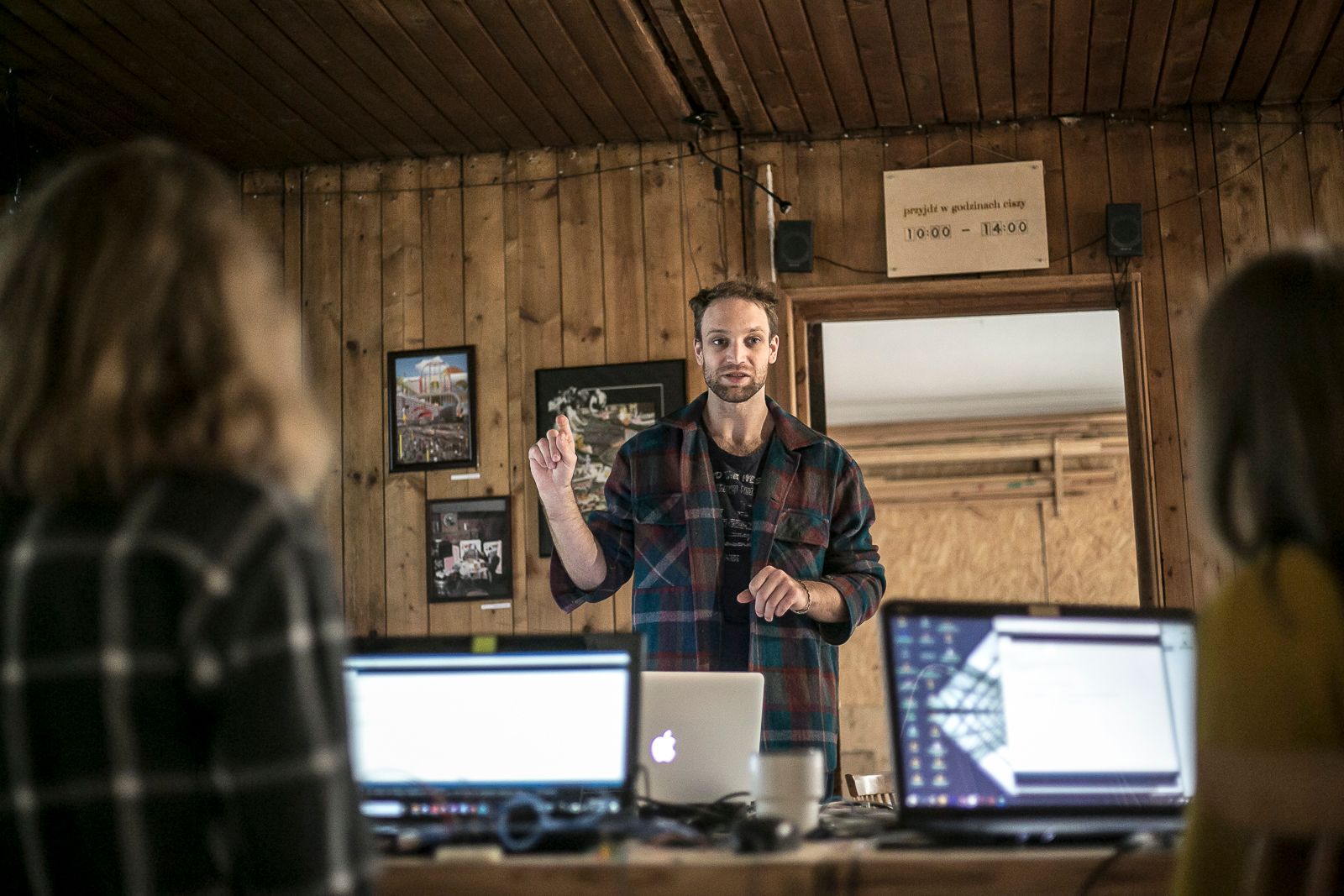 Podczas naszej rozmowy poznaję kilkoro stałych bywalców i opiekunów Pracowni. Tomasso zajmuje się dizajnem. Parę miesięcy temu przyjechał do Warszawy z Rzymu, gdzie pracował w podobnym miejscu – dawnej stacji kolejowej, zamienionej oddolnie na zespół pracowni rzemieślniczych. O Jazdowie usłyszał jeszcze przed przyjazdem do Polski, więc przyszedł tu już pierwszego dnia pobytu w Warszawie.