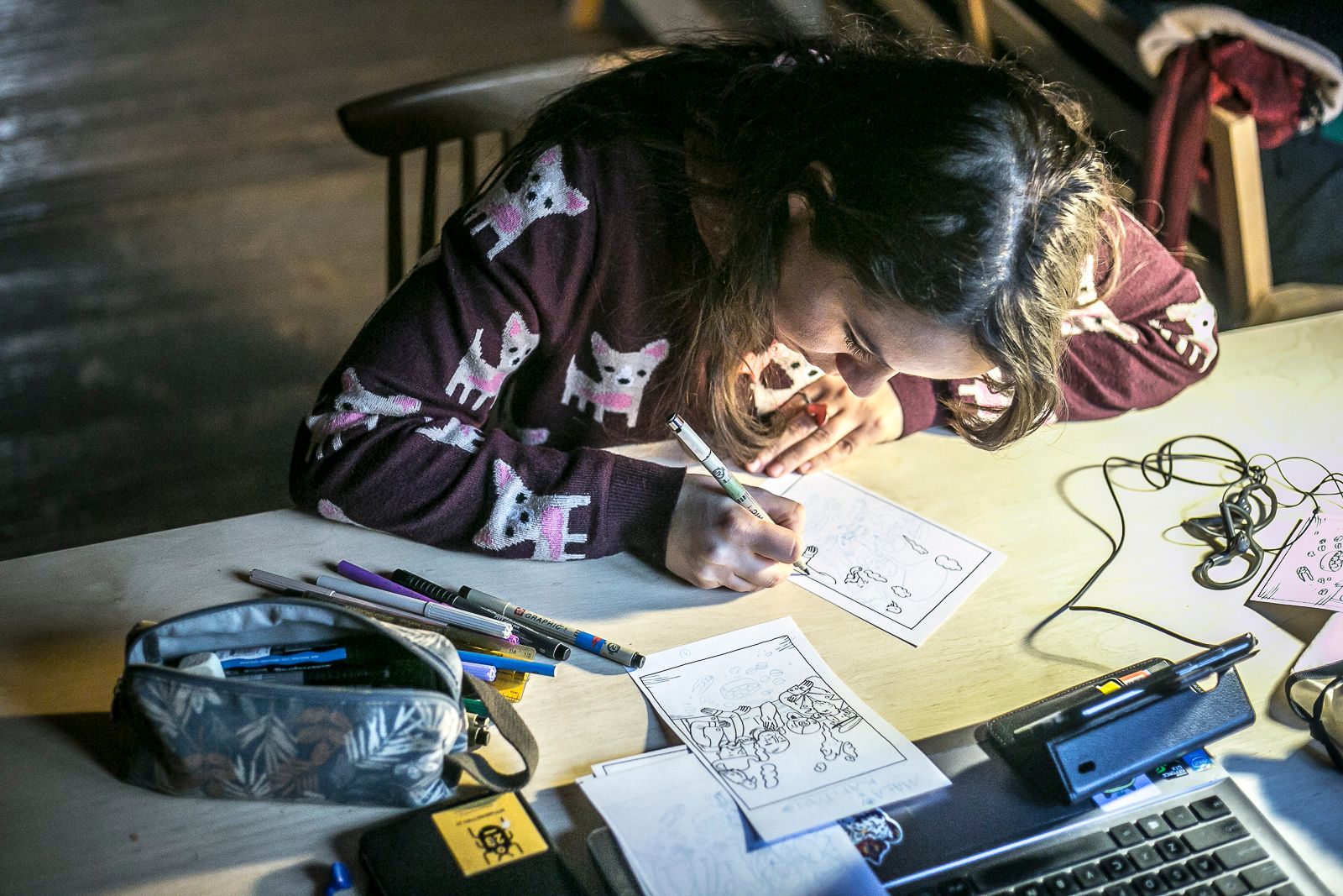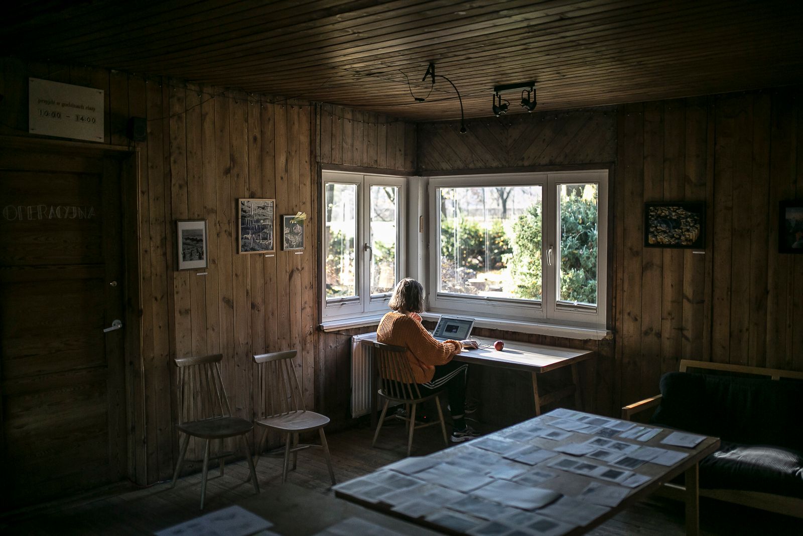Ania, którą freelanserska praca w domu zaczęła wpędzać w stany lękowo-depresyjne: – Chciałam już przestać siedzieć cały dzień w dresie przed komputerem. Zaczęłam szukać jakiegoś coworkingu, ale na żaden nie było mnie stać, bo miejsce przy biurku kosztuje średnio ok. 500zł za miesiąc a jak robisz komiks to czasami ciężko tyle wyskrobać – mówi. O OPJ powiedziała jej Weronika Reroń, też ilustratorka, która była już wtedy związana z tym miejscem.