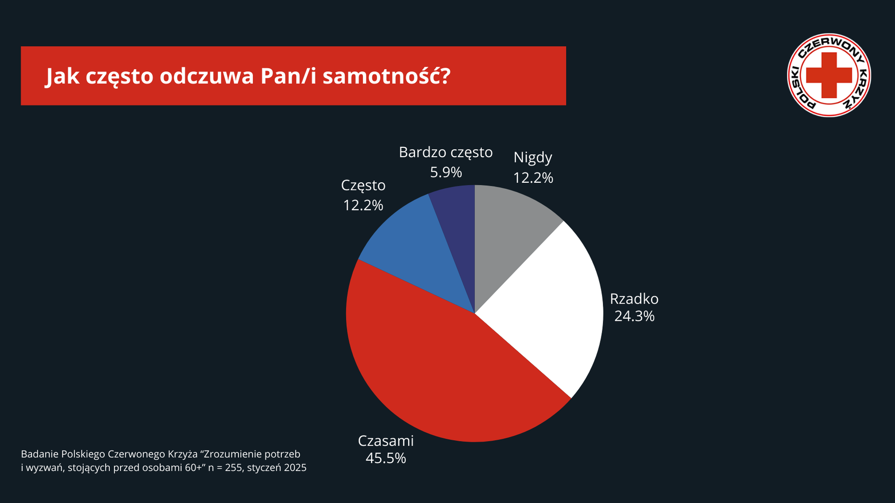 Z badania przeprowadzonego w styczniu przez Polski Czerwony Krzyż, wynika, że ponad 55% seniorów powyżej 60 roku życia mieszka samotnie. Ci, którzy mieszkają z innymi, często wskazują, że relacje wewnątrz gospodarstwa domowego nie zawsze zaspokajają potrzebę głębszych więzi społecznych.