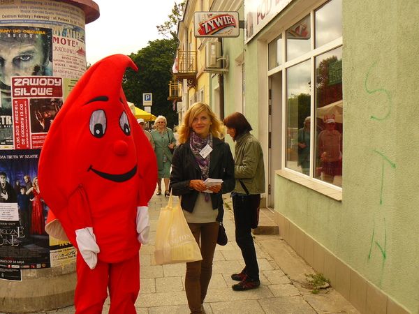 Następnie Kropelka z wolontariuszami ruszyła ulicami miasta , odwiedzając sklepy , urzędy, szkoły .Rozdawała ulotki promujące honorowe krwiodawstwo oraz zachęcała do czynnego oddawania krwi. Akcja cieszyła się dużym zainteresowaniem mieszkańców. Ludzie podchodzili, brali ulotki, zadawali pytania i robili zdjęcia z Kropelką. Ogromne zainteresowanie wzbudziła także wśród turystów odwiedzających nasze miasto.
