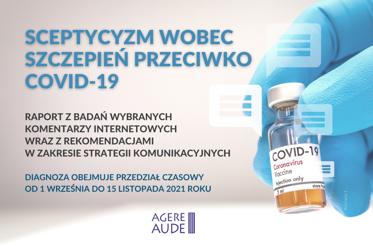 Raport „Sceptycyzm wobec szczepień przeciwko COVID-19” przygotowały lingwistki z Uniwersytetu Śląskiego w Katowicach na zlecenie Fundacji Wiedzy i Dialogu Społecznego Agere Aude. Celem analizy było zrozumienie (nie ocena) sposobu myślenia osób sprzeciwiających się szczepieniom na COVID-19 oraz wypracowanie zestawu zasad dobrej i odpowiedzialnej społecznie komunikacji w czasie pandemii.