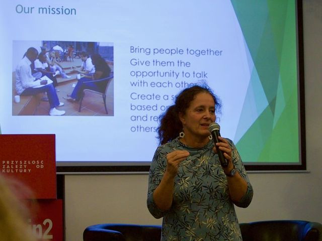 C.S.: – Broń Boże! Absolutnie się nie przekonywać! Próbujecie tylko wytłumaczyć swoje opinie, zastanowić się, dlaczego uważacie tak, a nie inaczej. Ale bezwzględnie musicie posłuchać także racji drugich. Potem możecie zadawać sobie pytania. To nie są przyjemne rozmowy. Wymagają wiele myślenia krytycznego, również o sobie samym. Wchodzimy głębiej i głębiej w myślenie własne i drugiej strony. Ktoś powie, że „w Polsce potrzebne są zmiany”, a ja mogę wówczas zapytać: „a co to jest Polska? Co oznacza dla was, a co dla was?”. Ludzie muszą zacząć myśleć o tym, jakich słów do czego używają i dlaczego. Co te słowa dla nich znaczą? Chcemy sprawić, aby stali się bardziej samoświadomi. To oczywiście jest bardzo trudne, w wyniku czego uczestnicy często opuszczają dialog, są bardzo agresywni, źli. Czasem nawet płaczą.