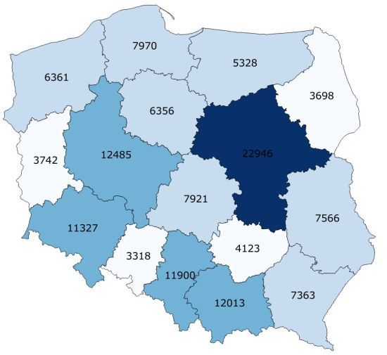 Najwięcej na Mazowszu, najmniej w opolskim