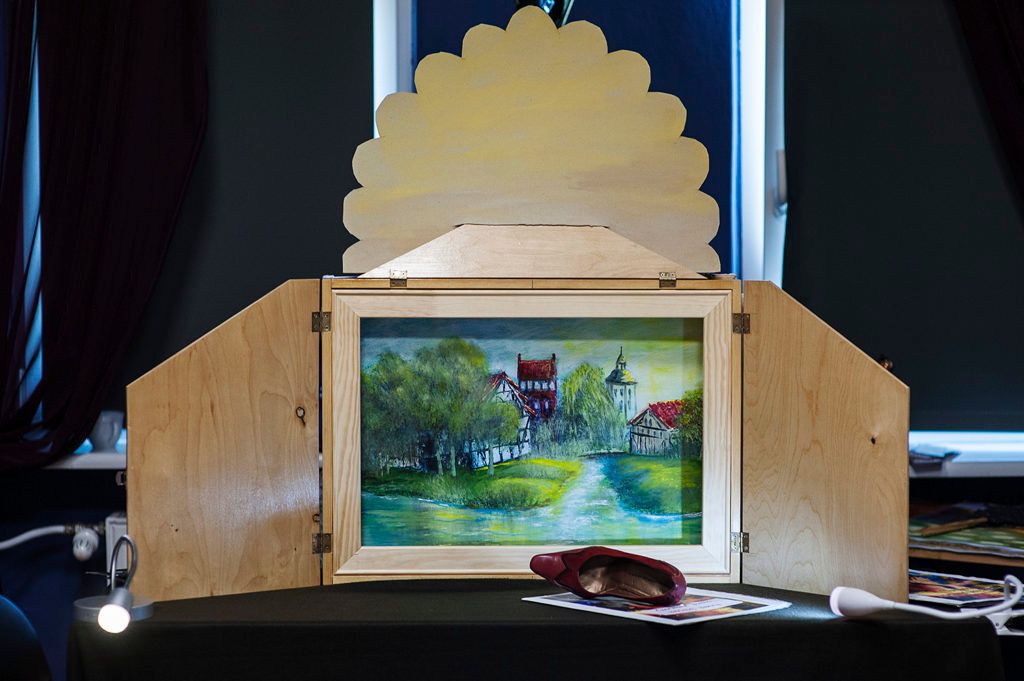 Henryka Głowińska: – Pomysł przyniosła nam jedna z koleżanek z naszego Słupskiego Uniwersytetu Trzeciego Wieku. Cały czas coś czyta, szpera, wynajduje. Któregoś razu opowiedziała nam o kamishibai. To japoński teatrzyk, w którym historię opowiada się poprzez ilustracje. W miarę czytania bajki, animator zmienia obrazki, na których ręcznie namalowane są kolejne sceny opowieści. Wszystko mieści się w niedużej drewnianej ramce, ustawiamy ją na stoliku przodem do publiczności. Tak, żeby ilustracje znajdywały się na wysokości oczu. Tak się najlepiej ogląda.