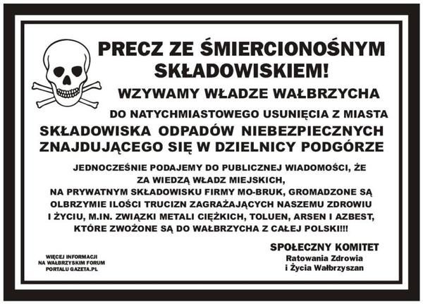 Sprawa Twierdzy Mobruk nabiera tempa. W internecie pojawiły się plakaty niezwołujące władze do usunięcia składowiska azbestu z terenu miasta Wałbrzych.