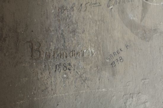 Na każdym z pięter na tynku widać napisy. Jeden z nich wydrapał jakiś Martin, w 1644. Wandal z XVII wieku.