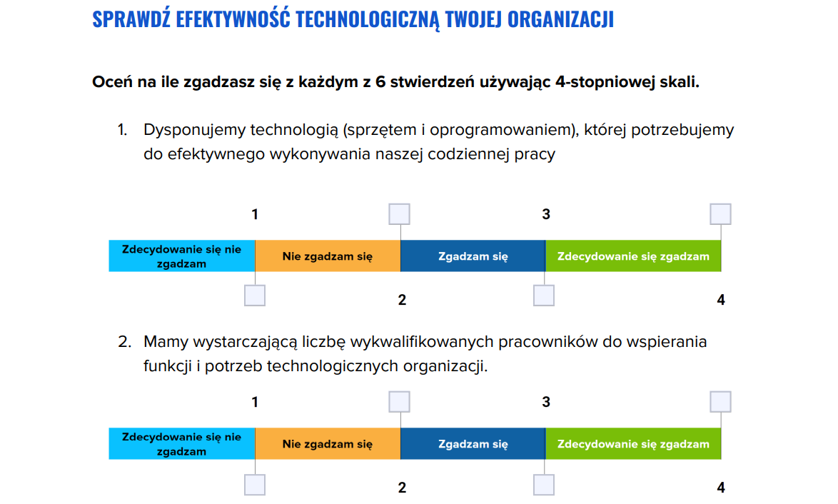 Jeśli chcesz sprawdzić, na jakim poziomie efektywności twoja organizacja wykorzystuje technologię, zacznij od krótkiego kwestionariusza.