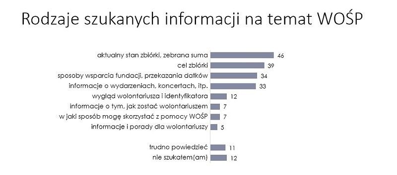 Aby precyzyjniej zaplanować komunikację zbiórki oraz dobrać najchętniej wykorzystywane przez użytkowników metody wpłat, warto badać ich upodobania, oraz regularnie analizować ich wyniki. Przede wszystkim należy odpowiedzieć sobie na pytanie, kim jest odbiorca zbiórki. Warto zapytać użytkowników, jakich informacji szukają na Twojej stronie, oraz określić, jaką macie wspólną wartość, czy z jakich narzędzi korzysta Twój odbiorca. Według badań przeprowadzonych przez IQS, na temat rodzaju wyszukiwanych informacji dotyczących WOŚP, użytkownicy najczęściej pytają o: aktualnie zebraną kwotę, cel zbiórki oraz możliwe sposoby wsparcia Fundacji.