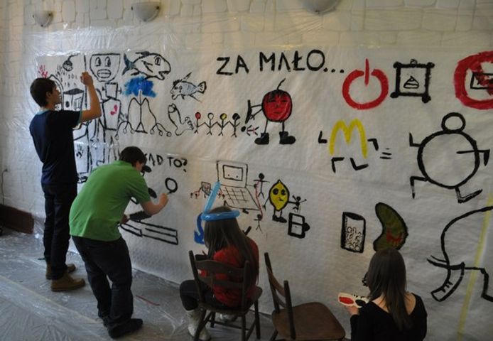 Artystyczne zapędy nigdy nie gasną (nawet te ograniczone terminami i wytycznymi ) - nasze też nie wygasły. Przybory malarskie czekają na śmiałków którzy chcieliby dołączyć do naszych wolontariuszy przy kolejnych działaniach streetartowych, i którzy w swoich głowach mają nowe pomysły do zrealizowania! Każdy z nas jest artystą, niektórzy tylko nie mają pojęcia ile sztuki w nich drzemie. Pomożemy Ci ją odnaleźć tylko musisz dać nam szansę!