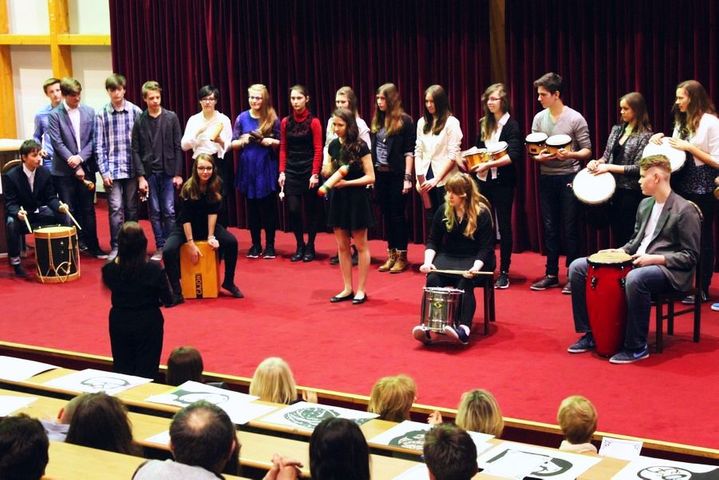 Następnie uczniowie obu szkół przedstawili pokaz slajdów „To my/ Das sind wir” ukazujący ich wspomnienia z ostatnich 3 lat nauki. Były to m.in. warsztaty wielkanocne, obóz językowy w Pobierowie, wróżby andrzejkowe, gra terenowa we Frankfurcie nad Odrą, zwiedzanie Muzeum Viadrina, spotkanie z frankfurckim historykiem Eckardem Reißem, czy rywalizacja sportowa w jednej z kręgielni.