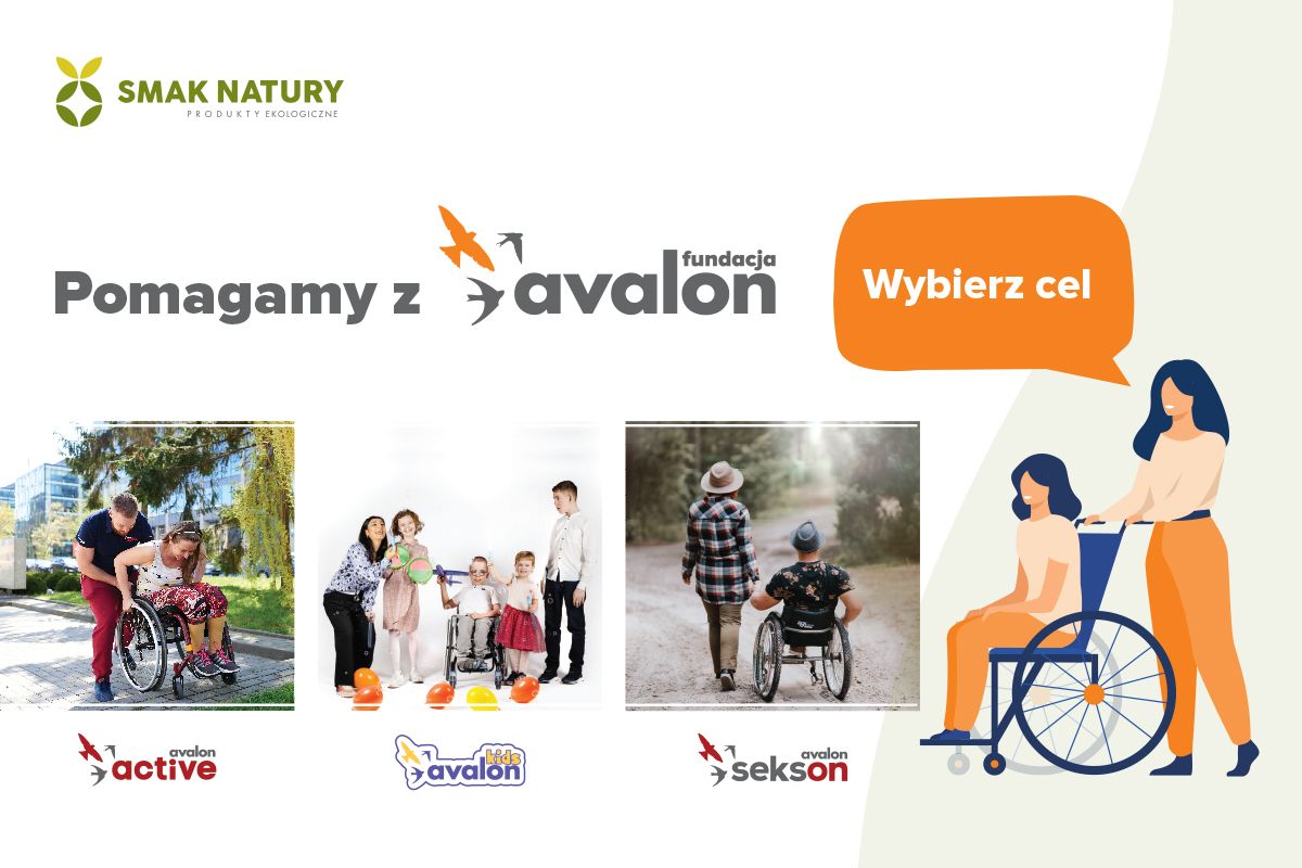 Już 1 września startuje druga edycja akcji sprzedażowej we współpracy z siecią sklepów Smak Natury na rzecz projektów Fundacji Avalon. Kupujący przy każdym zakupie, w jednym z trzech sklepów stacjonarnych (KEN, Hala Koszyki, Wilanów), mogą wesprzeć wybrany przez siebie projekt, prowadzony przez Fundację Avalon, mając do wyboru Avalon Kids, któregocelem jest wyrównywanie szans pomiędzy dziećmi pełnosprawnymi a z niepełnosprawnością, Centrum Aktywnej Rehabilitacji Avalon Active pomagający osobom z niepełnosprawnościami na drodze do samodzielności i niezależności oraz Projekt Sekson poświęcony przełamywaniu stereotypów i wspieraniu działań edukacyjnych z zakresu seksualności i rodzicielstwa osób z niepełnosprawnością ruchową.