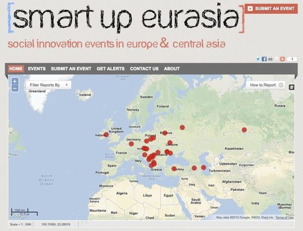 Stworzyliśmy* mapę i nazwaliśmy ją smartup eurasia.** Mapa ma służyć do dzielenia się informacjami na temat wydarzeń zwiazanych z innowacyjnością – szeroko rozumianą – w Europie, na Kaukazie i w Azji Środkowej.