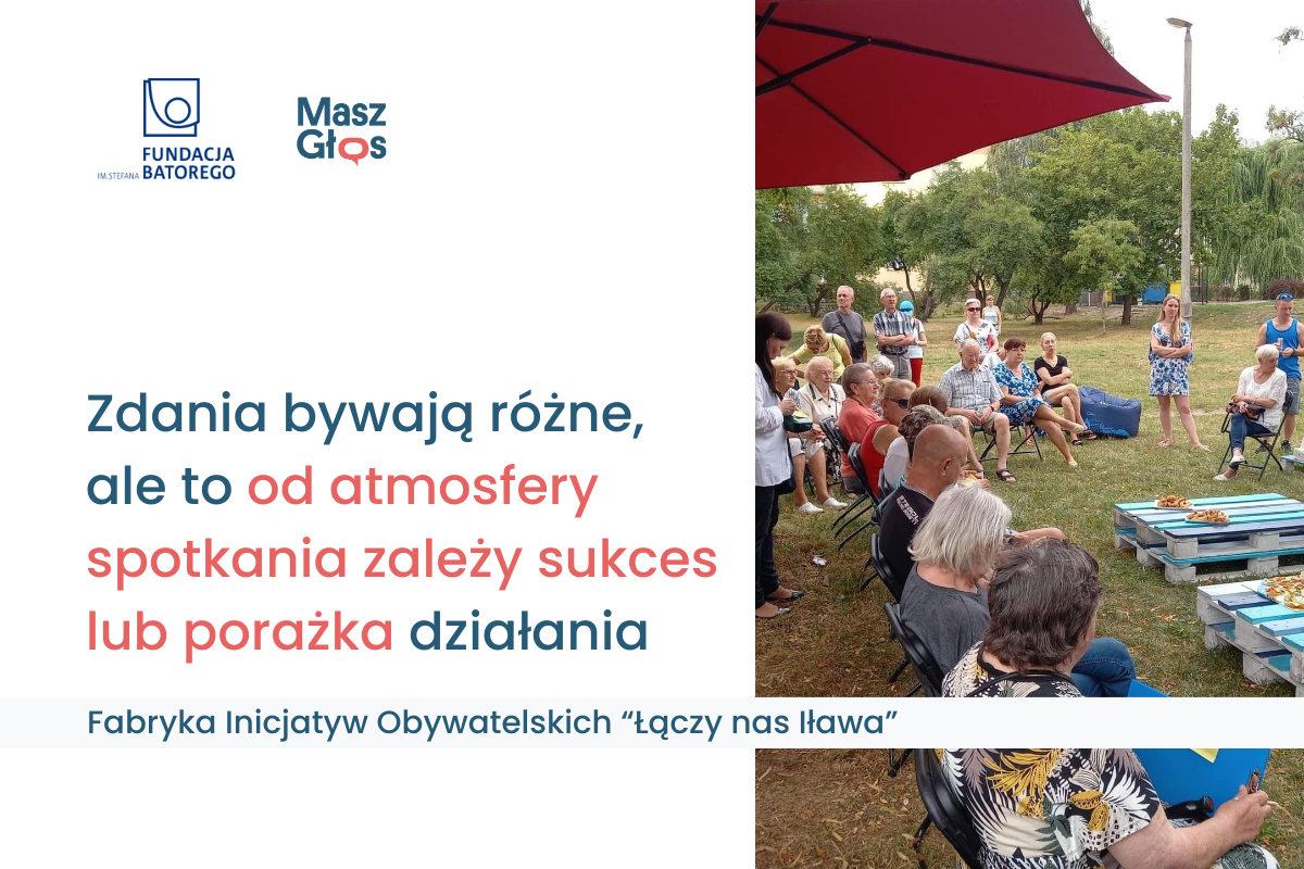 – Każde spotkanie z urzędnikiem, radną, prezydentem służy uczestnictwu w podejmowaniu decyzji, a od tego, jak i w jakiej atmosferze będzie przebiegało, zależy sukces lub porażka przedsięwzięcia. Sztuką jest tak prowadzić rozmowy, aby zakończyły się powodzeniem, bo chociaż zdania bywają różne, często chodzi o to samo. Przekonały nas o tym „Śniadania obywatelskie” – mówi Anna Okuniewicz z Fabryki Inicjatyw Obywatelskich „Łączy nas Iława”.