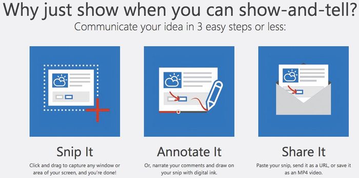 Microsoft dodaje do swojego produktu szereg rozwiązań, które automatycznie czynią go czymś więcej, niż tylko programem do zrzutów ekranowych. Z poziomu jednego paska menu, dodawanego w wybranym przez nas podczas instalacji miejscu na ekranie możemy wykonać wiele czynności. Po pierwsze, zrobić standardowy zrzut ekranu - całego lub jego fragmentu. Po drugie, możemy wzbogacić tenże zrzut o notatkę głosową lub odręczną. Po trzecie, mamy możliwość dogrania obrazu z kamerki internetowej.