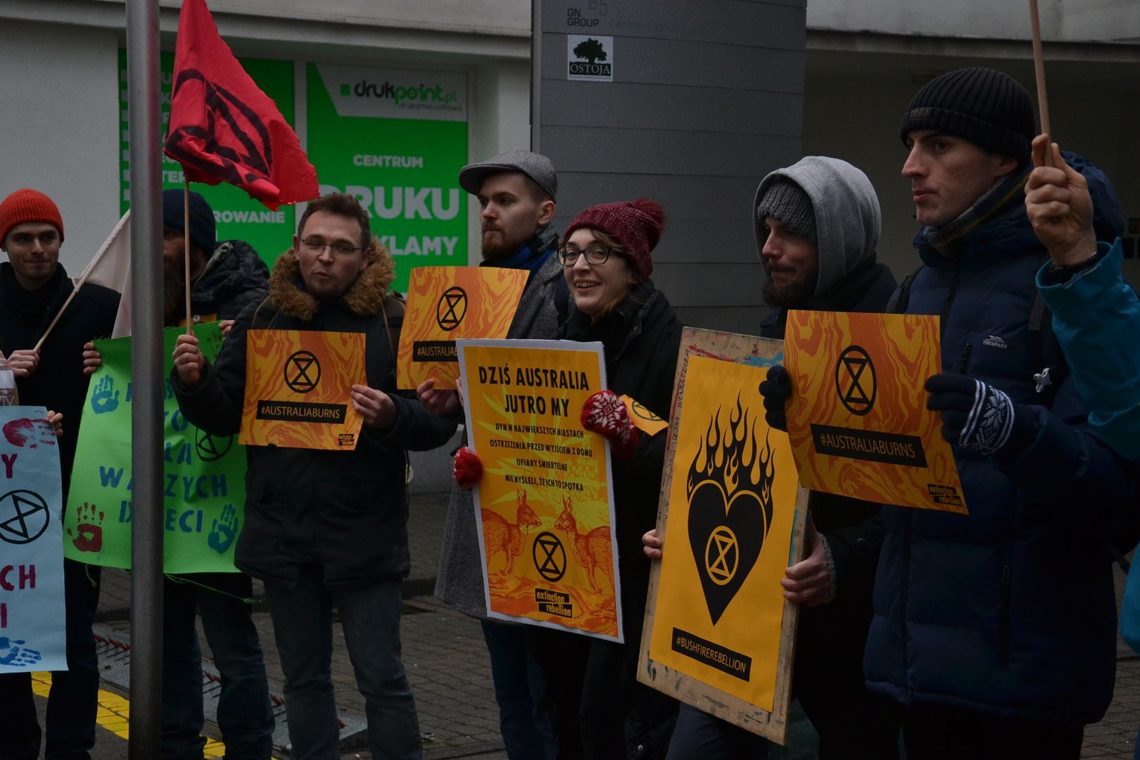 Rankiem 10 stycznia aktywiści i aktywistki Extinction Rebellion Polska protestowali pod Ambasadą Australii w ramach międzynarodowego protestu solidarnościowego, którego celem było emocjonalne wsparcie mieszkańców Australii i pokazanie jedności ruchu Extinction Rebellion.