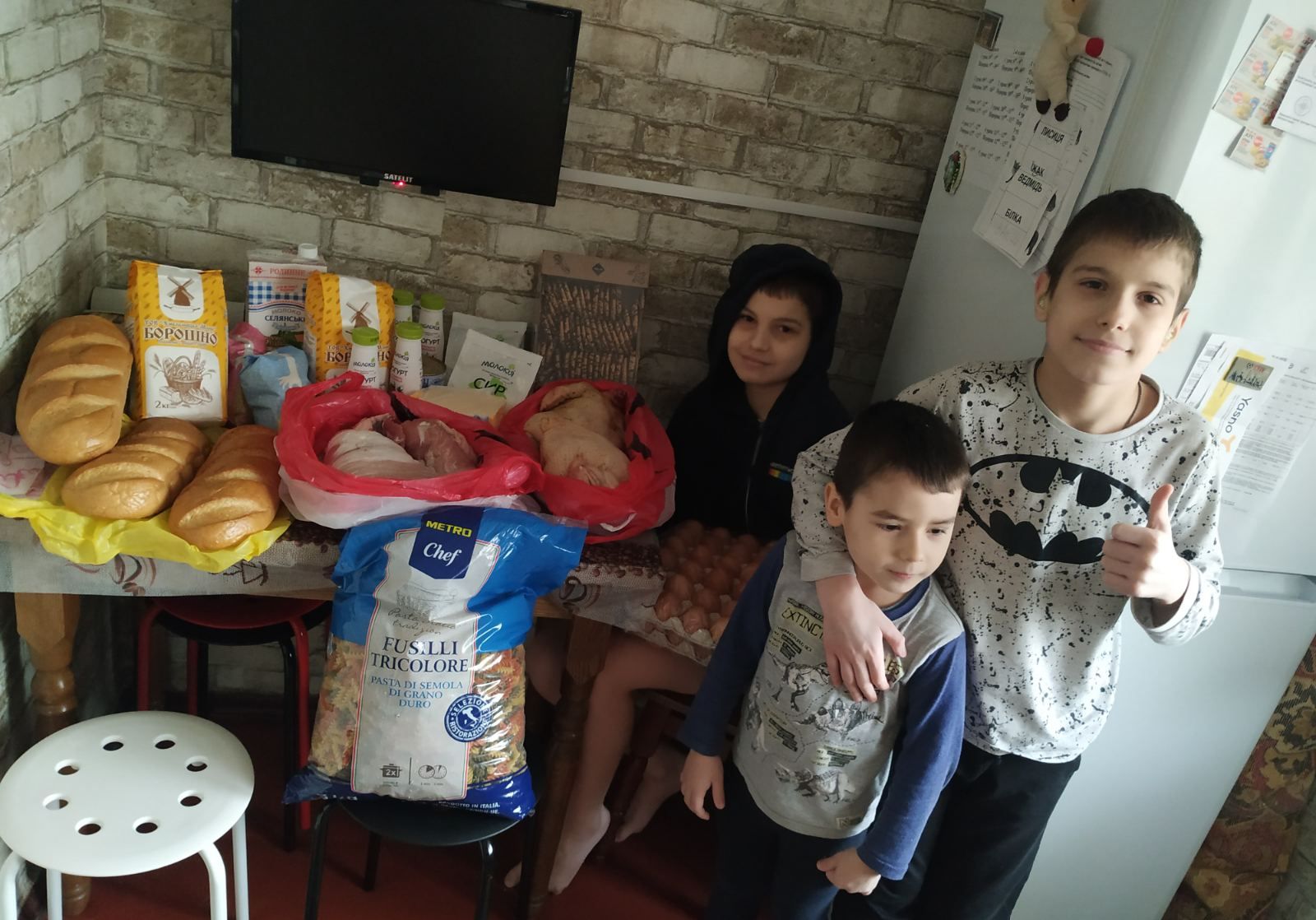 Dostarczenie niezbędnych produktów jest bardzo trudne. Na szczęście w wielu regionach wciąż dobrze i stabilnie działa ukraiński system bankowy. Można dokonywać przelewów, a rodzice zastępczy mają możliwość korzystania z kart płatniczych. Taka pomoc gotówkowa działa już od tygodni. Rodziny zaopatrują się przede wszystkim – jak widać na zdjęciach – w produkty suche, jak kasze, mleko w proszku, herbatniki, chrupki, a także jogurty, mięso, leki przeciwzapalne i przeciwbólowe.