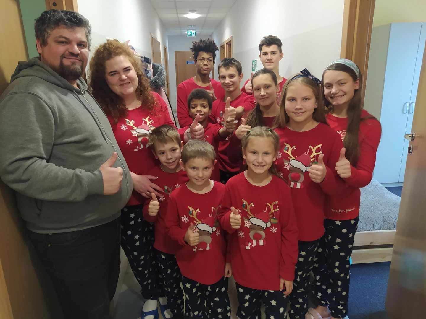Po miesiącach załatwiania spraw formalno-prawnych, w listopadzie do domu wprowadziła się pierwsza rodzina z Kijowa. To pani Olena i pan Nazarii z trójką biologicznych dzieci oraz siedmiorgiem dzieci z pieczy zastępczej. Pięcioro z nich – dotychczas żyjących w kijowskim domu dziecka – trafiło pod ich opiekę tutaj, w Lublinie, gdzie przyjechali z tymczasowego pobytu w Niemczech. Choć ich mieszkanie w stolicy Ukrainy dalej stoi całe, nie mogą tam wrócić – zagrożenie jest zbyt duże. Niedawno bomba spadła zaledwie 200 metrów od ich bloku.