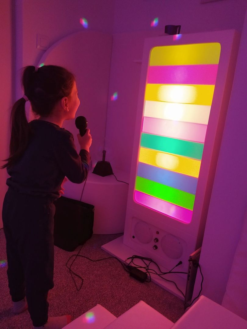 – Przełomem były zajęcia w naszej sali Snoezelen, którą Katerina od razu się zachwyciła. Magiczna atmosfera sali, delikatne światła i dźwięki sprzyjają relaksowi, odreagowaniu napięć i trudnych emocji. Już po kilku zajęciach dziewczynka zaczęła mówić – opowiada Magdalena Błażejczyk i dodaje: – Katerinka bardzo polubiła skoki do basenu z kulkami i masaż na łóżku wodnym. Niesamowicie reaguje na kolumnę świetlną przy której zaczęła się w głos śmiać. Największej zmiany doświadczyłyśmy przy drabince dźwiękowej z mikrofonem – im głośniej się mówi, tym więcej kolorów się świeci. Liczyłyśmy najpierw po polsku, potem po ukraińsku, a gdy pokazałam jej, jak sprawić, żeby zaświeciła się cała drabinka, ona krzyknęła. Od tamtej pory Katerinka odzywa się i śmieje.
