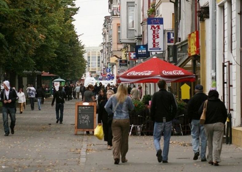 Teraz na parterze niemal każdej z kamienic znajduje się bank. Mijam opustoszały lokal, na szybach którego od co najmniej od roku wisi kartka „do wynajęcia”. Wcześniej była tu Karczma Słupska, dawniej jeden z najlepszych lokali, w którym można było zjeść pyszne regionalne przysmaki i napić się kwasu chlebowego. Dalej jest bank, punkt sprzedaży jednej z sieci telefonów komórkowych, znów bank, sklep z tanimi butami, bank, i o!… bar mleczny „Poranek”, jeden z nielicznych punktów usługowych na tej ulicy, który przetrwał próbę czasu. W bramach stoją tu codziennie ci sami mieszkańcy, którym zawsze brakuje 20 groszy… do chleba, biletu lub piwa. Mało tu dzieci, za to sporo dorosłych, którzy albo idą do, albo z pracy, ewentualnie mają coś do załatwienia w banku. Wojska Polskiego jest ulicą, którą przechodzą turyści, by dojść do hotelu lub do informacji turystycznej, czy na Stary Rynek. Tylko przechodzą, bo raczej nie znajdą na niej miejsca, by spokojnie usiąść i napić się dobrej kawy. Tak to wygląda dzisiaj.