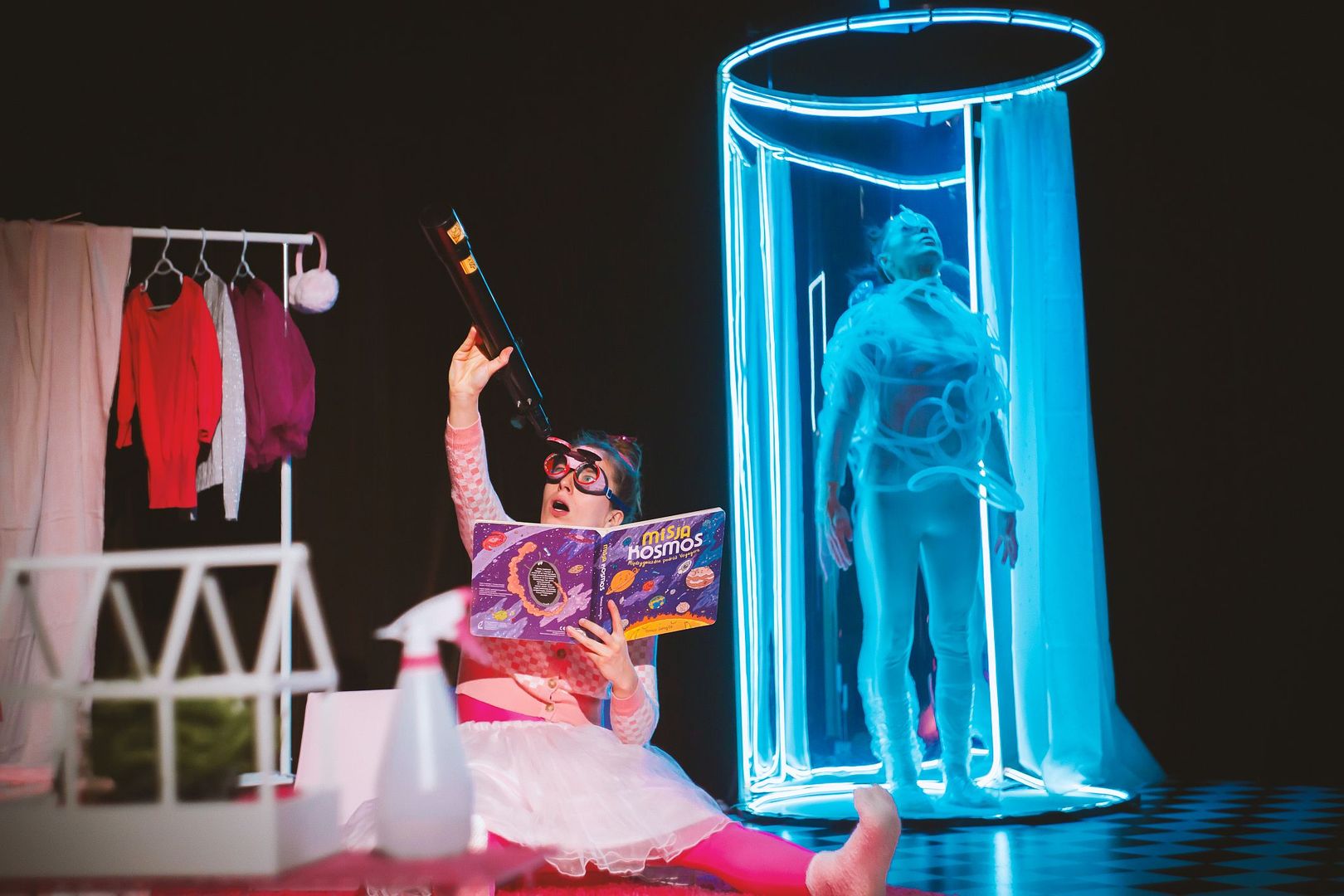 Taką właśnie historię, dziewczynki, której głowa jest pełna marzeń, opowiada spektakl Teatru Sztuka Ciała. Przedstawienie o zagadkowym tytule „jO!”, wprowadzi nas w świat małej pasjonatki kosmosu, dla której niechęć do kąpieli stała się pretekstem do odkrycia wszechświata a międzyplanetarne podróże przyniosły mnóstwo nieoczekiwanych przygód. Nawet najbardziej zwyczajny przedmiot w mig przeobraża się w rakietę, albo asteroidę. Na scenie rzeczywistość przenika się z marzeniami tak, że nie sposób odróżnić co jest prawdziwe, a co istnieje tylko dzięki dziecięcej wyobraźni. Podczas jej fantastycznej podróży małą astronautkę czekają niesamowite przygody, wielkie niebezpieczeństwa, a może nawet… przyjaźń?